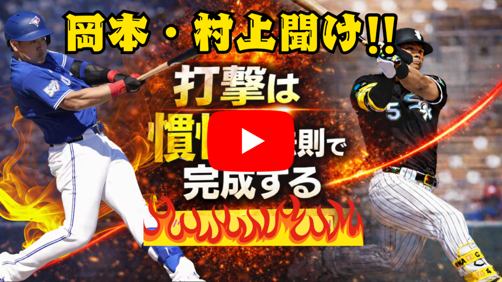 岡本・村上聞け‼️打撃は『慣性の法則』で完成する‼️ 2026 3/13 打撃理論 2026年3月13日 目次岡本・村上聞け!!打撃は『慣性の法則』で完成する!! バッティングのスイングは『慣性の法則』を利用します 『慣性の法則』はタイミングを取る際にも大きく利用できます 『慣性の法則』を自由自在にら使いこなすもの、それ即ち世界を制する打者になれます。 世界トップのBaseball Instructor西村悟が生み出した、『慣性の法則打法』についてのさわりだけを話した内容です 打撃理論 よかったらシェアしてね! URLをコピーしました! URLをコピーしました! コメント コメントする コメントをキャンセルコメント ※ 名前 ※ メール ※ サイト 次回のコメントで使用するためブラウザーに自分の名前、メールアドレス、サイトを保存する。